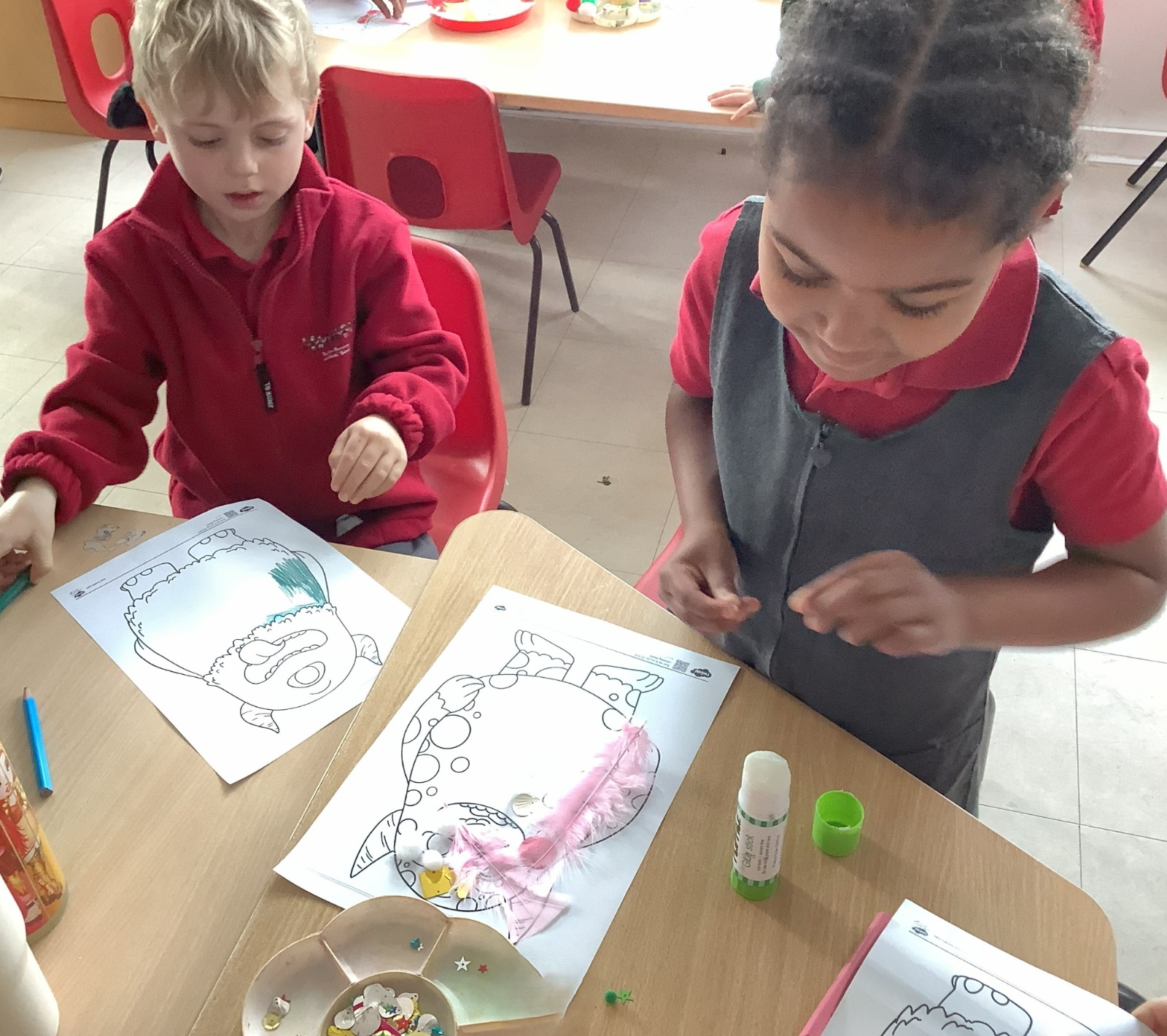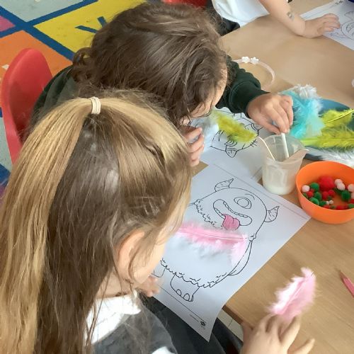 The children created their own monsters and generated vocabulary to describe how their monsters would move.