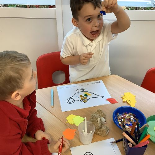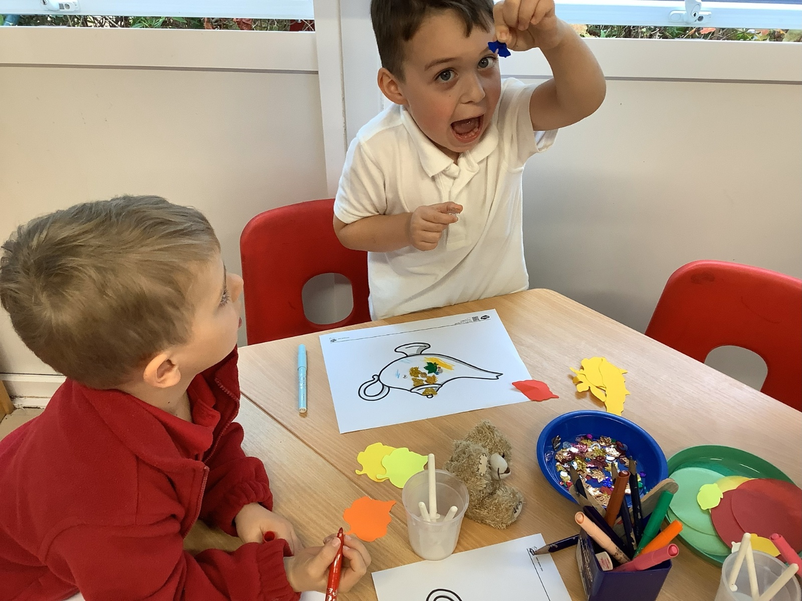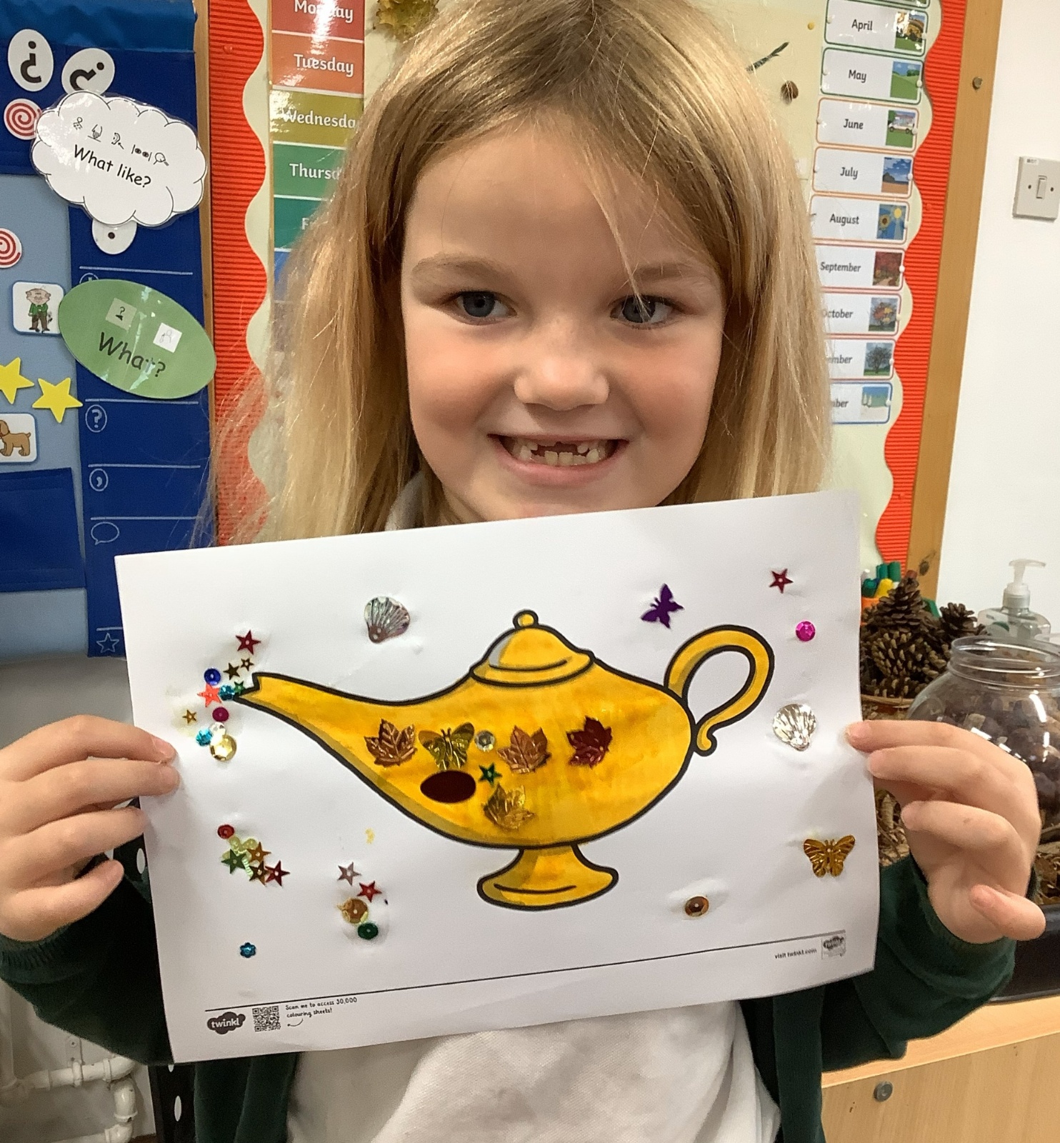 The children were very excited to find a magic lamp had arrived in their classroom. They were inspired to design their own magic lamps and talk and write about them.