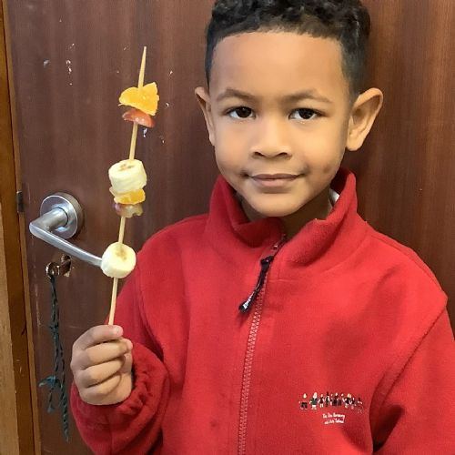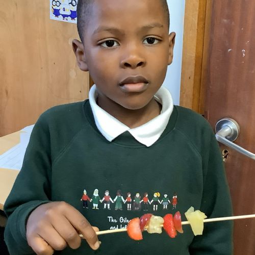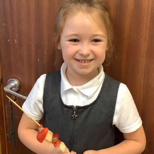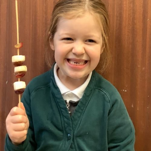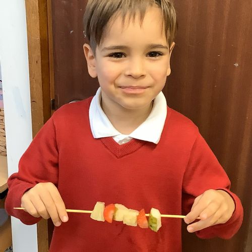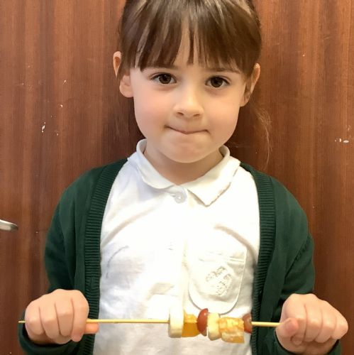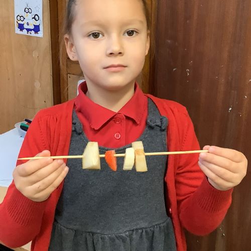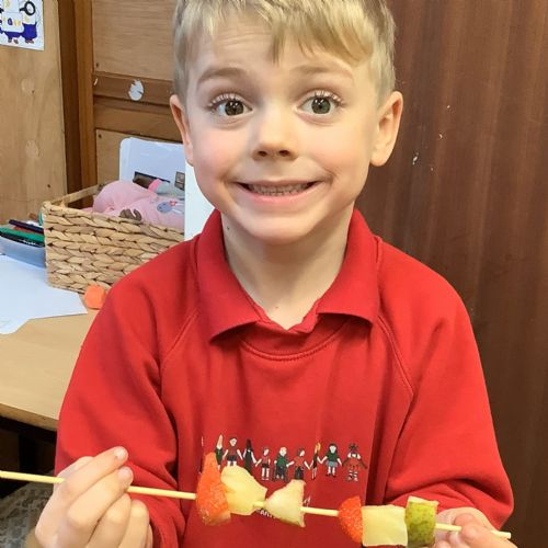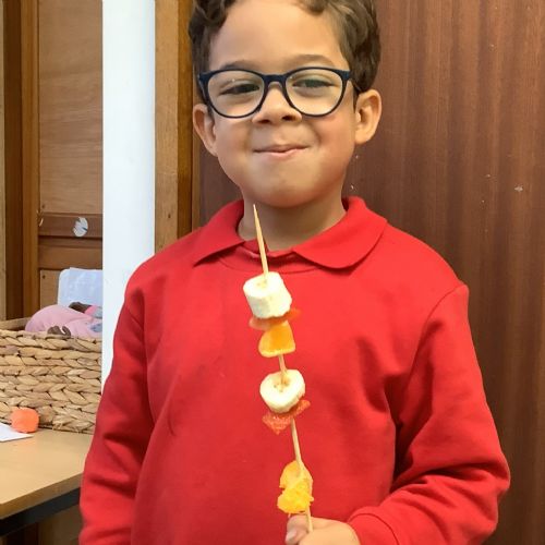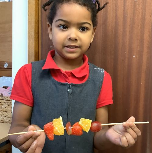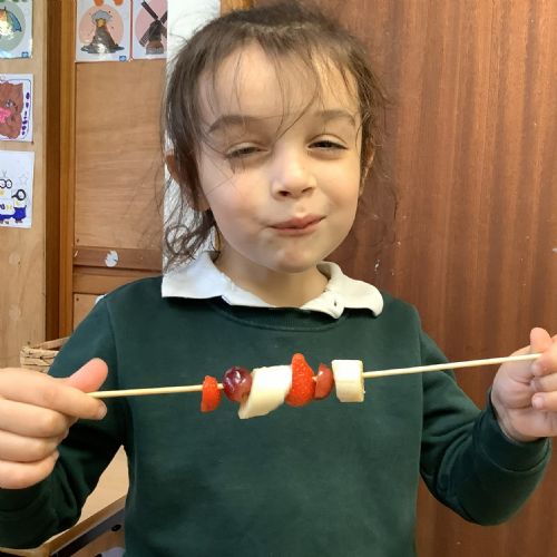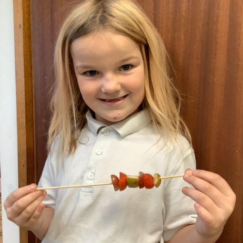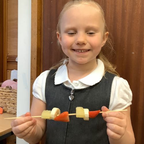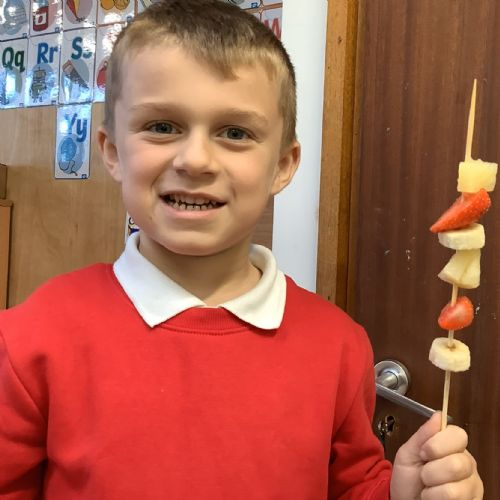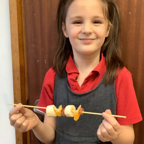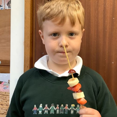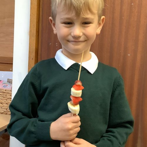 The children tasted different fruits in a science lesson to explore their sense of taste. They used a bar chart to analyse which fruits were more or less popular. In design and technology, they chose their three favourite fruits and designed their own fruit kebabs. They then made them following their plans, ate them and evaluated them.