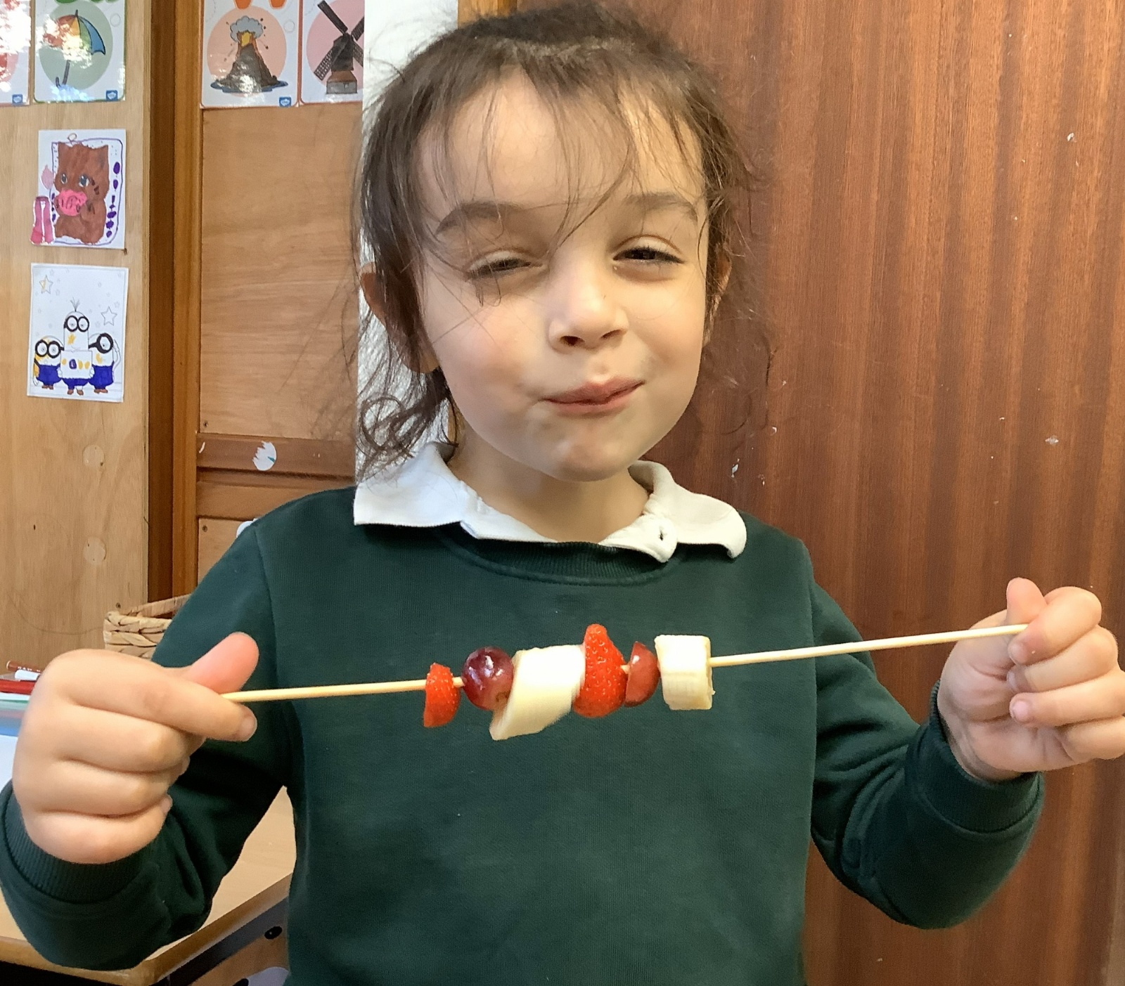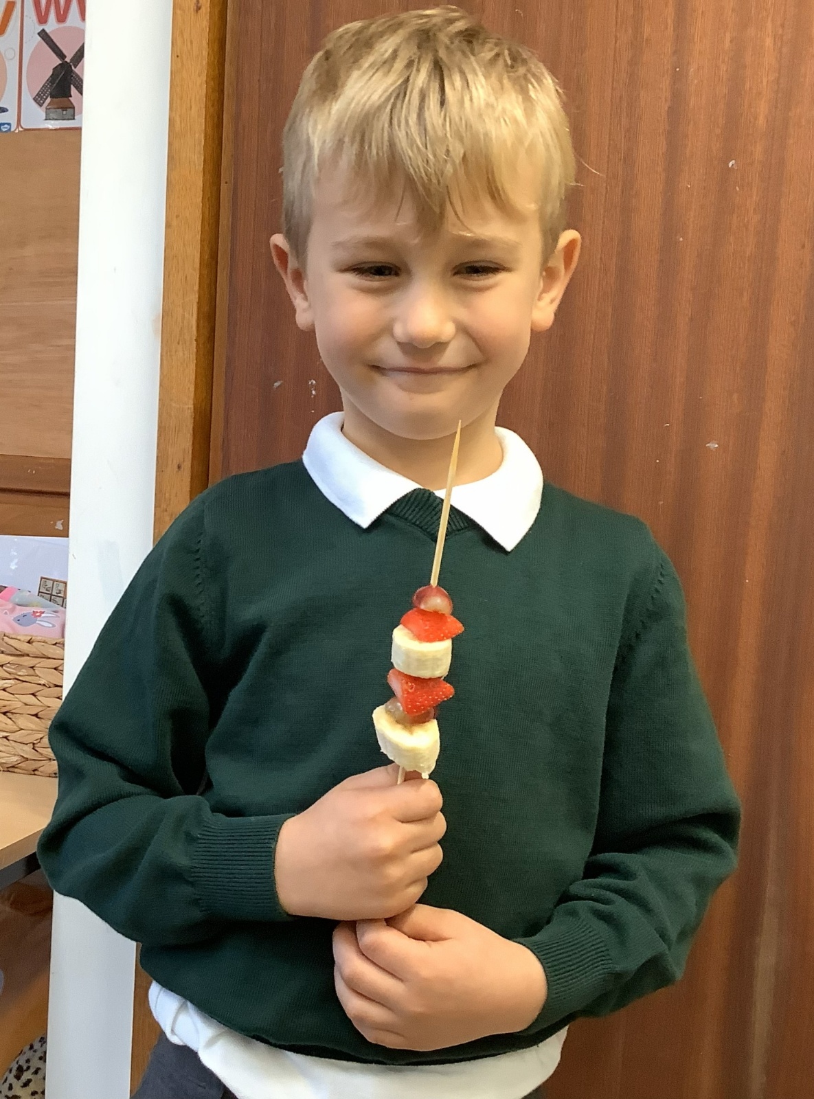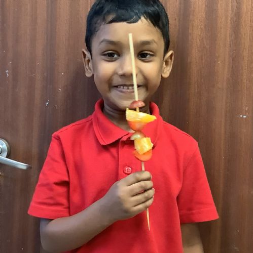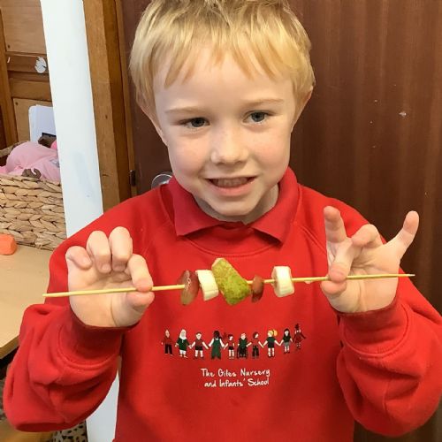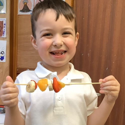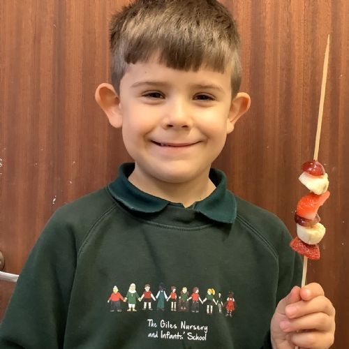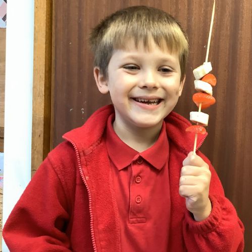 The children tasted different fruits in a science lesson to explore their sense of taste. They used a bar chart to analyse which fruits were more or less popular. In design and technology, they chose their three favourite fruits and designed their own fruit kebabs. They then made them following their plans, ate them and evaluated them.