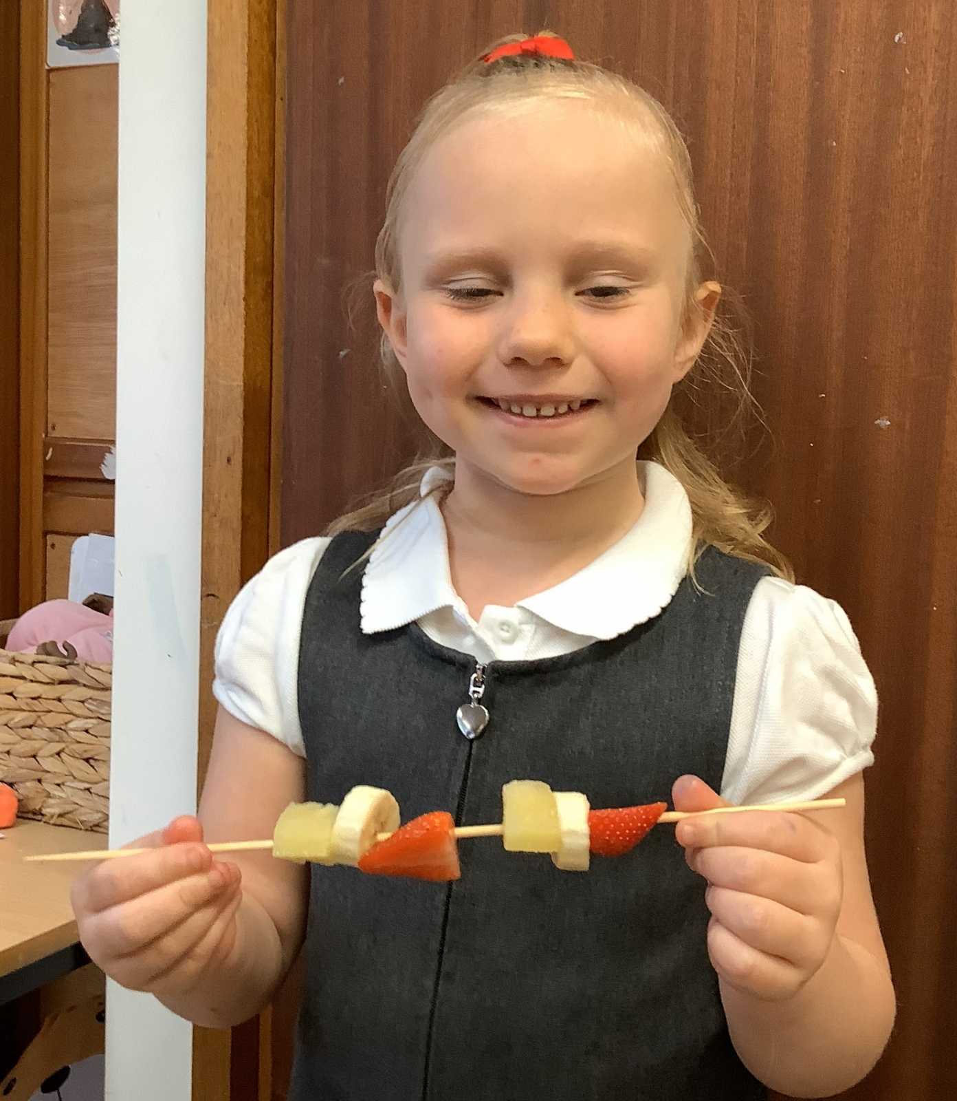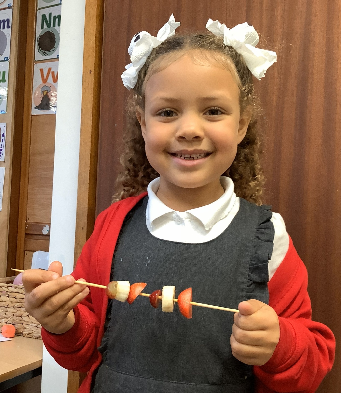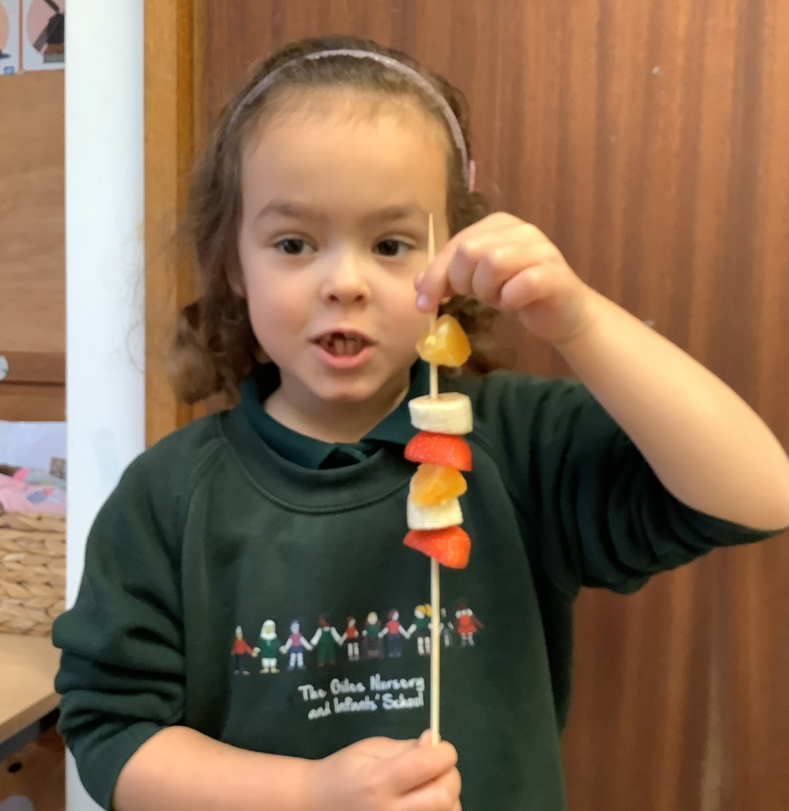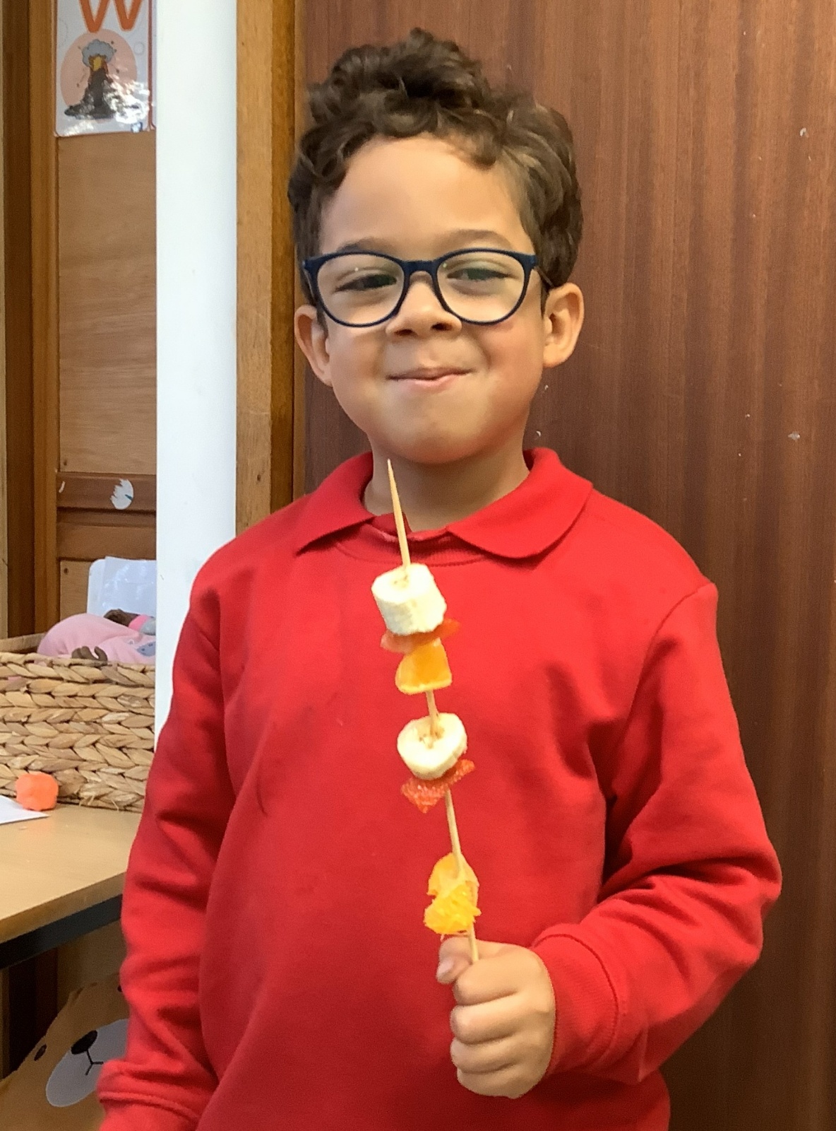 The children tasted different fruits in a science lesson to explore their sense of taste. They used a bar chart to analyse which fruits were more or less popular. In design and technology, they chose their three favourite fruits and designed their own fruit kebabs. They then made them following their plans, ate them and evaluated them.