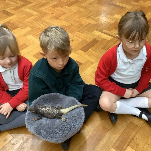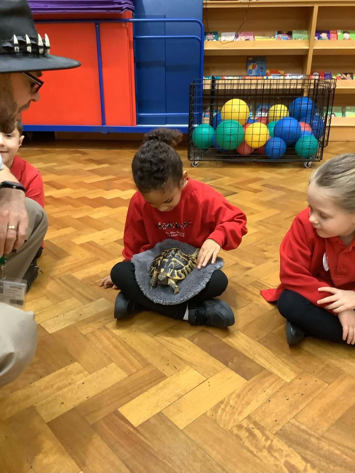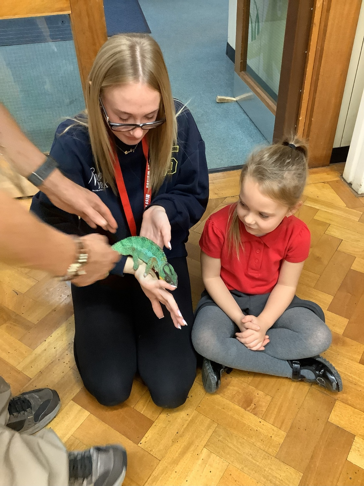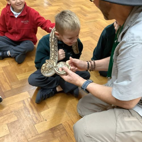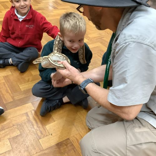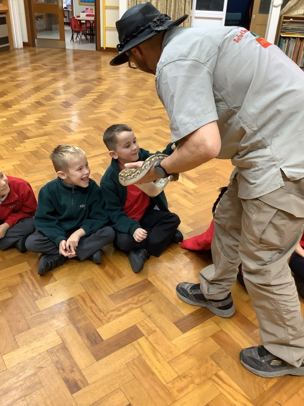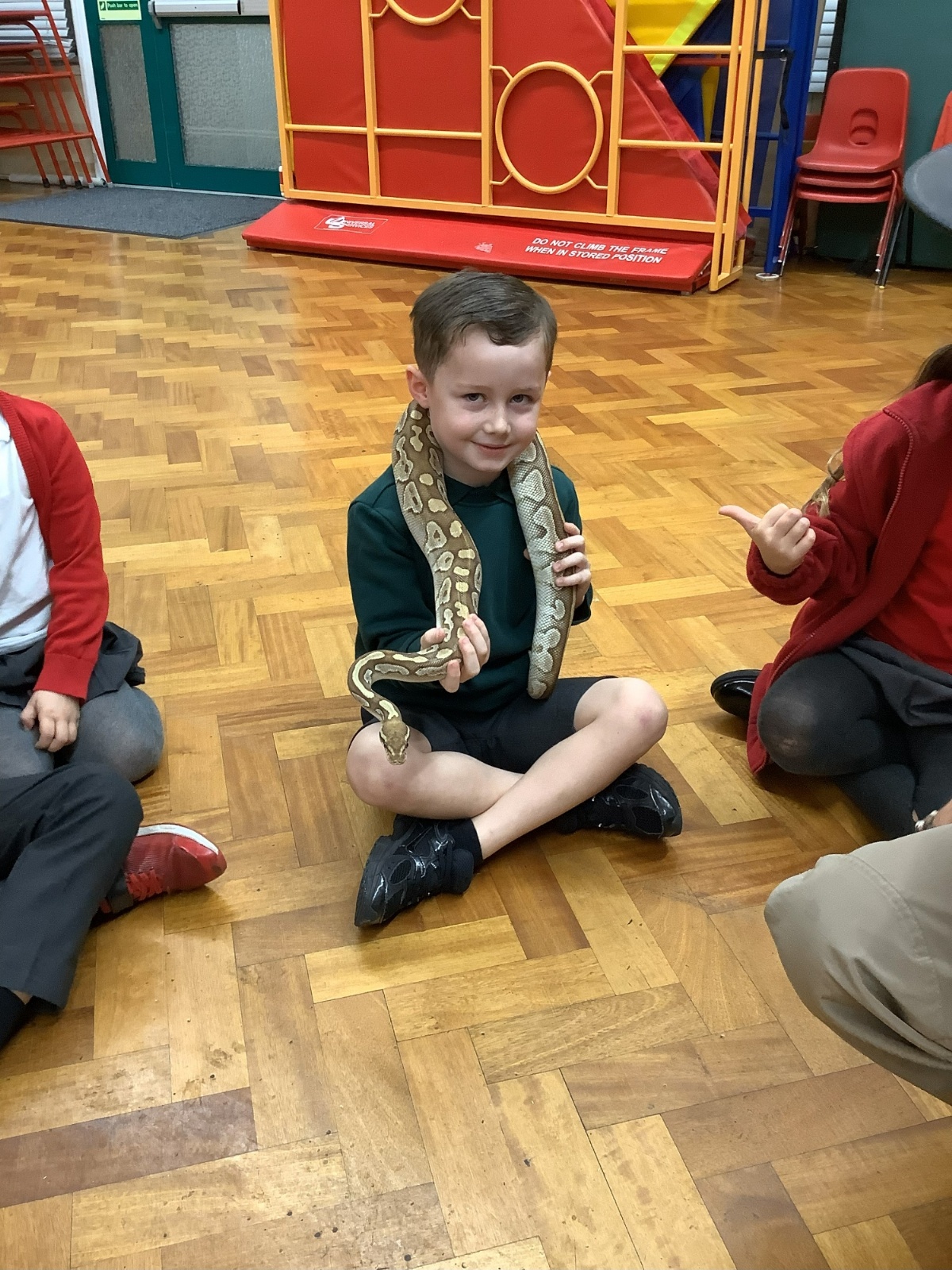 The children had a marvellous encounter with a lesser tenrec, a chameleon, a tortoise, a chuckwalla, a royal python, a sand boa, guinea pigs, hissing cockroaches and stick insects.