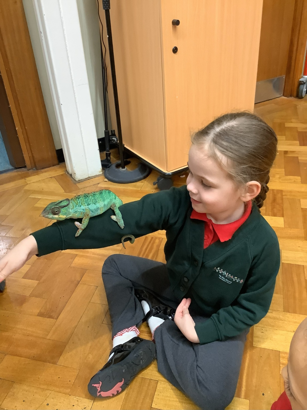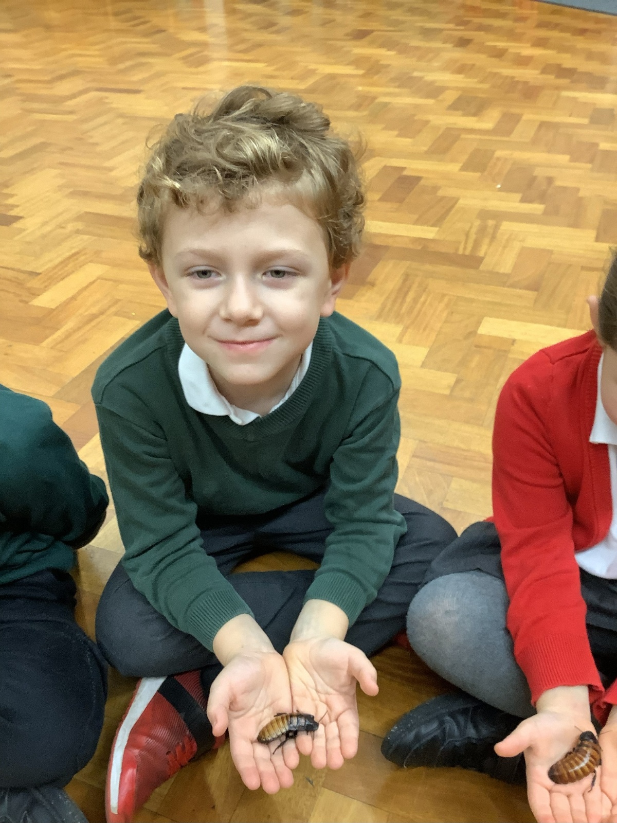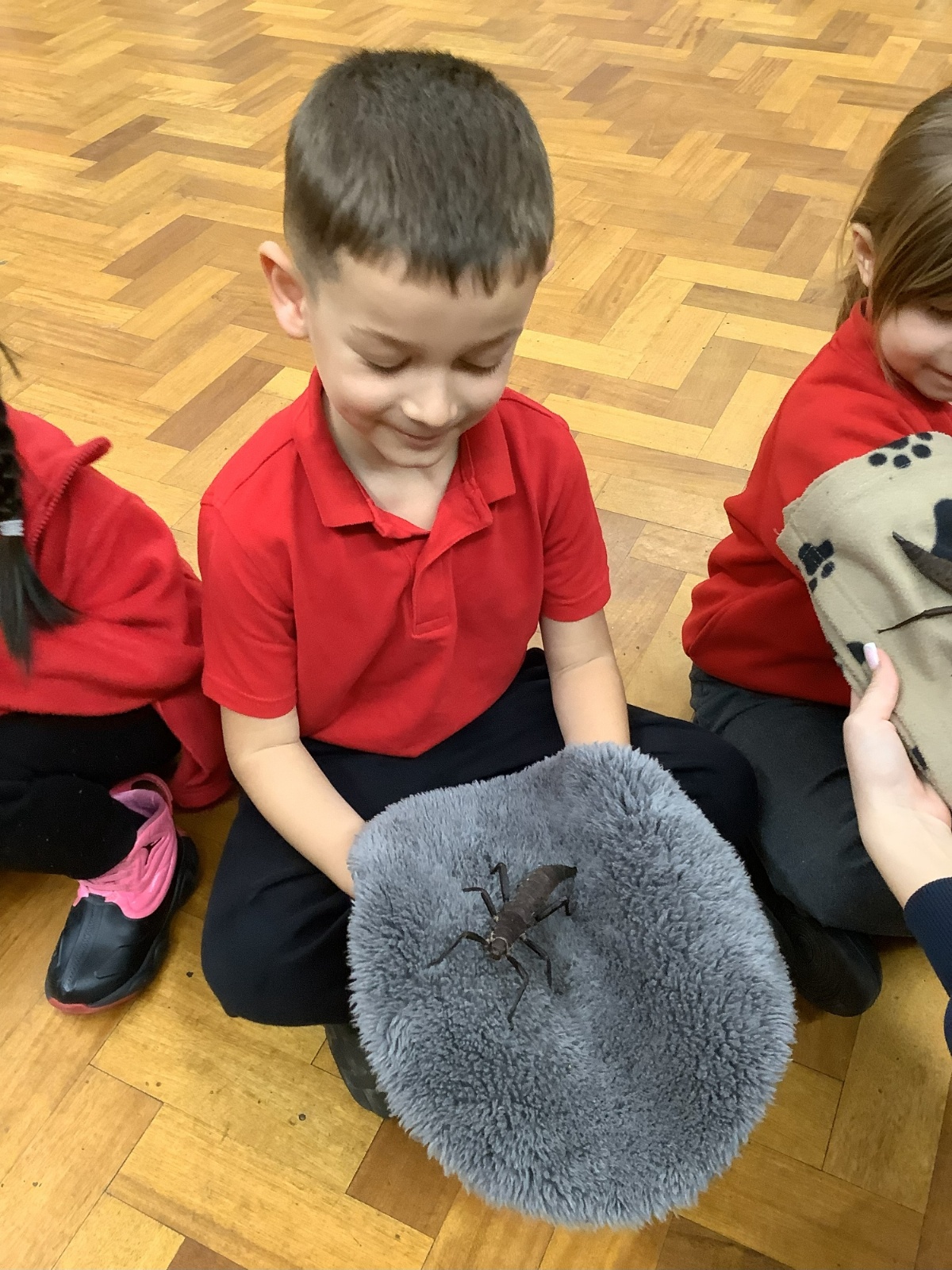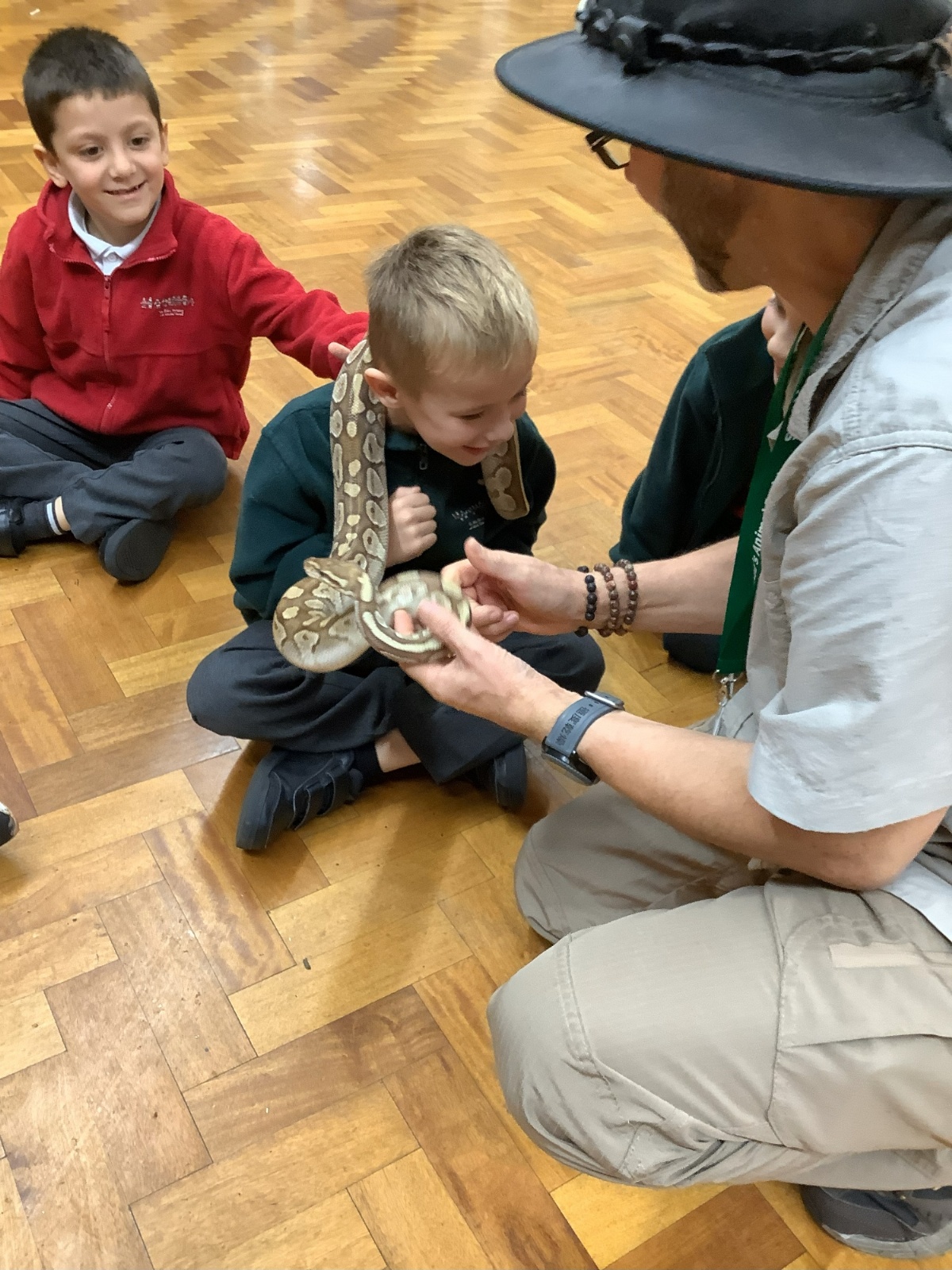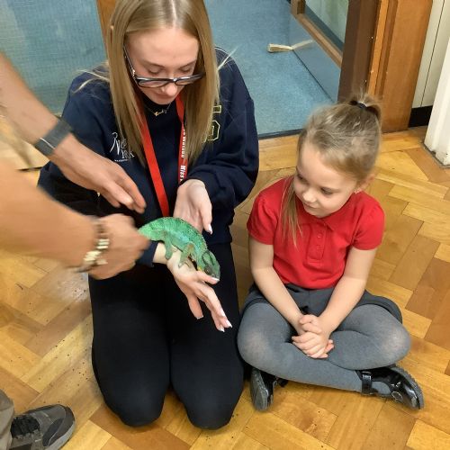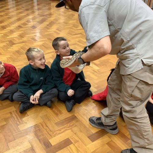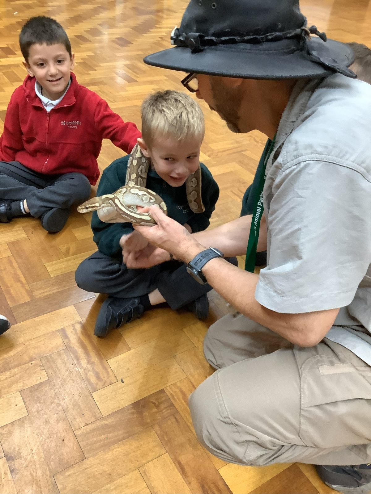 The children had a marvellous encounter with a lesser tenrec, a chameleon, a tortoise, a chuckwalla, a royal python, a sand boa, guinea pigs, hissing cockroaches and stick insects.