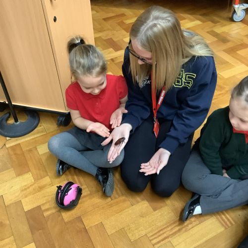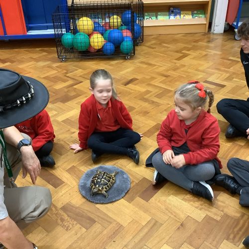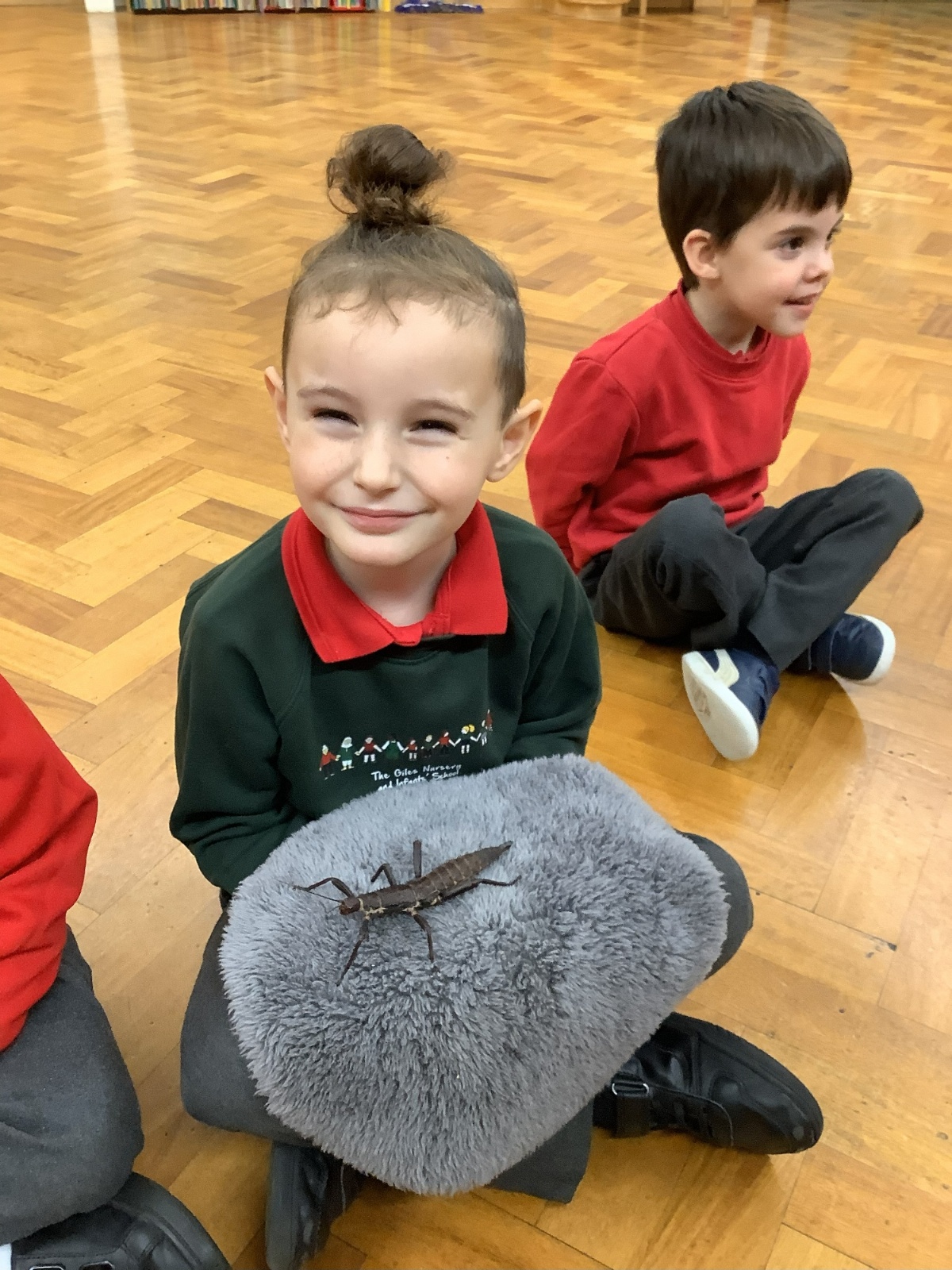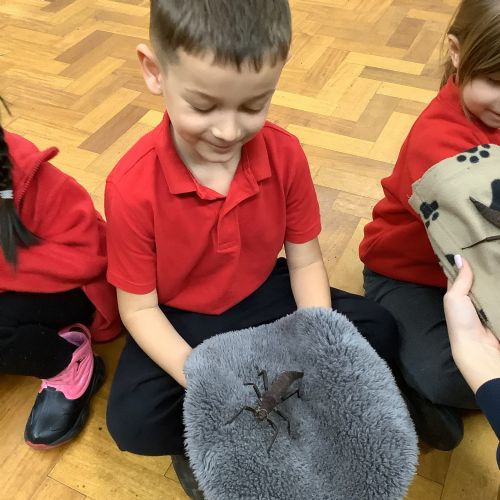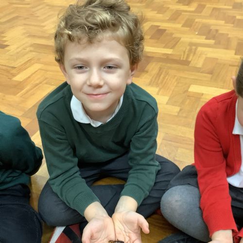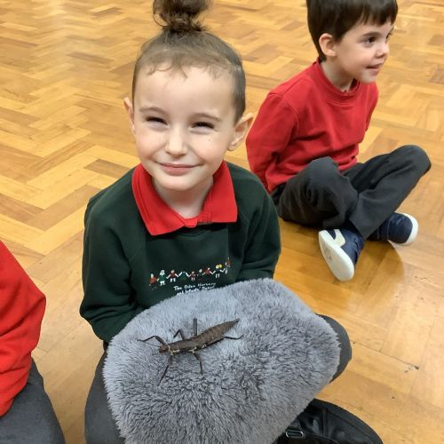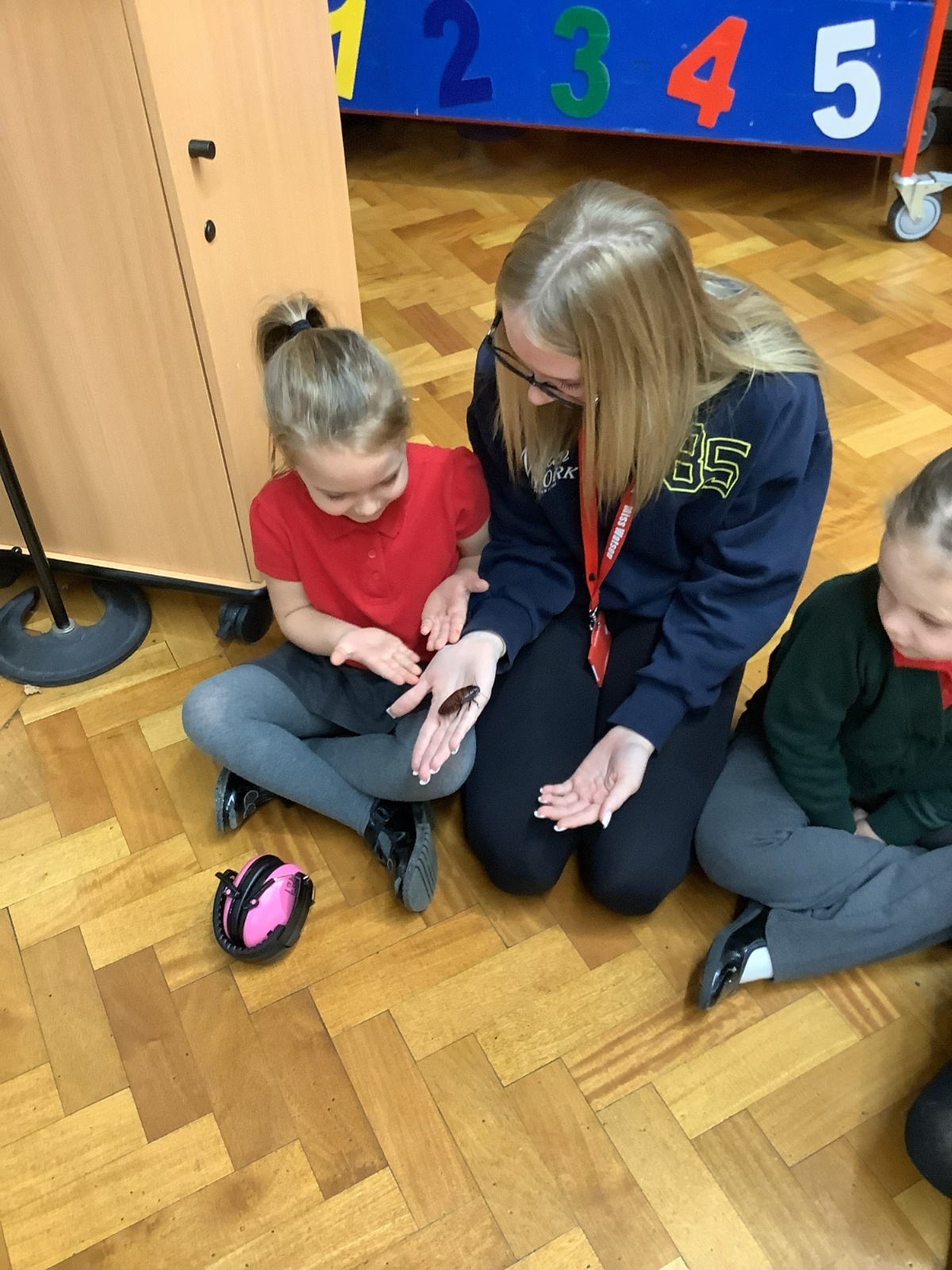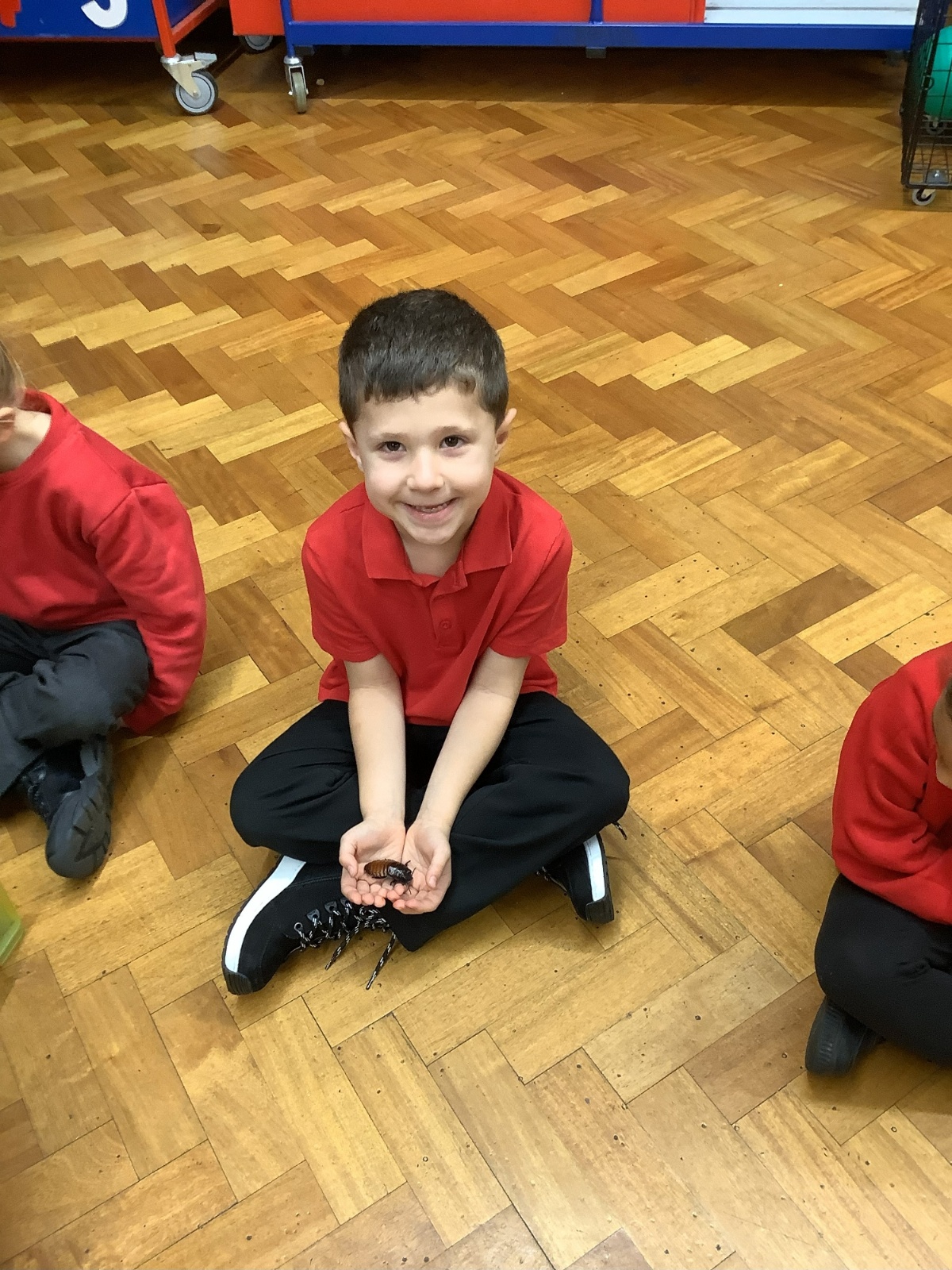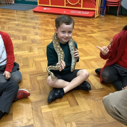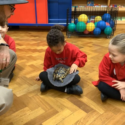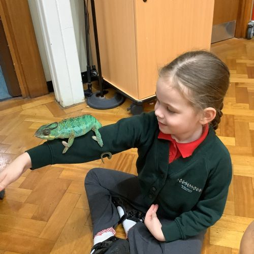 The children had a marvellous encounter with a lesser tenrec, a chameleon, a tortoise, a chuckwalla, a royal python, a sand boa, guinea pigs, hissing cockroaches and stick insects.