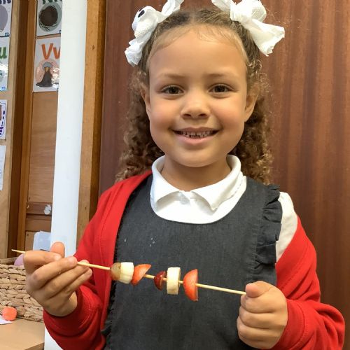The children tasted different fruits in a science lesson to explore their sense of taste. They used a bar chart to analyse which fruits were more or less popular. In design and technology, they chose their three favourite fruits and designed their own fruit kebabs. They then made them following their plans, ate them and evaluated them.